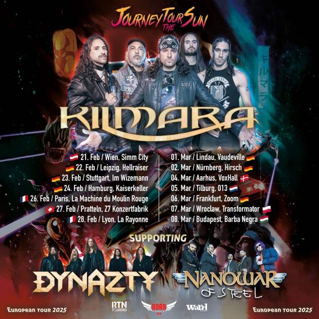After the spectacular international reception of their new album and having performed at some prestigious festivals such as Rock The Ring (CH), Rock Knights (FR), Rock Fest (SP) or More than Fest (SK) to date, KILMARA makes the leap to Europe alongside the Swedish sensation DYNAZTY and the Italian party band NANOWAR OF STEEL, with some sold-out shows already posted.
