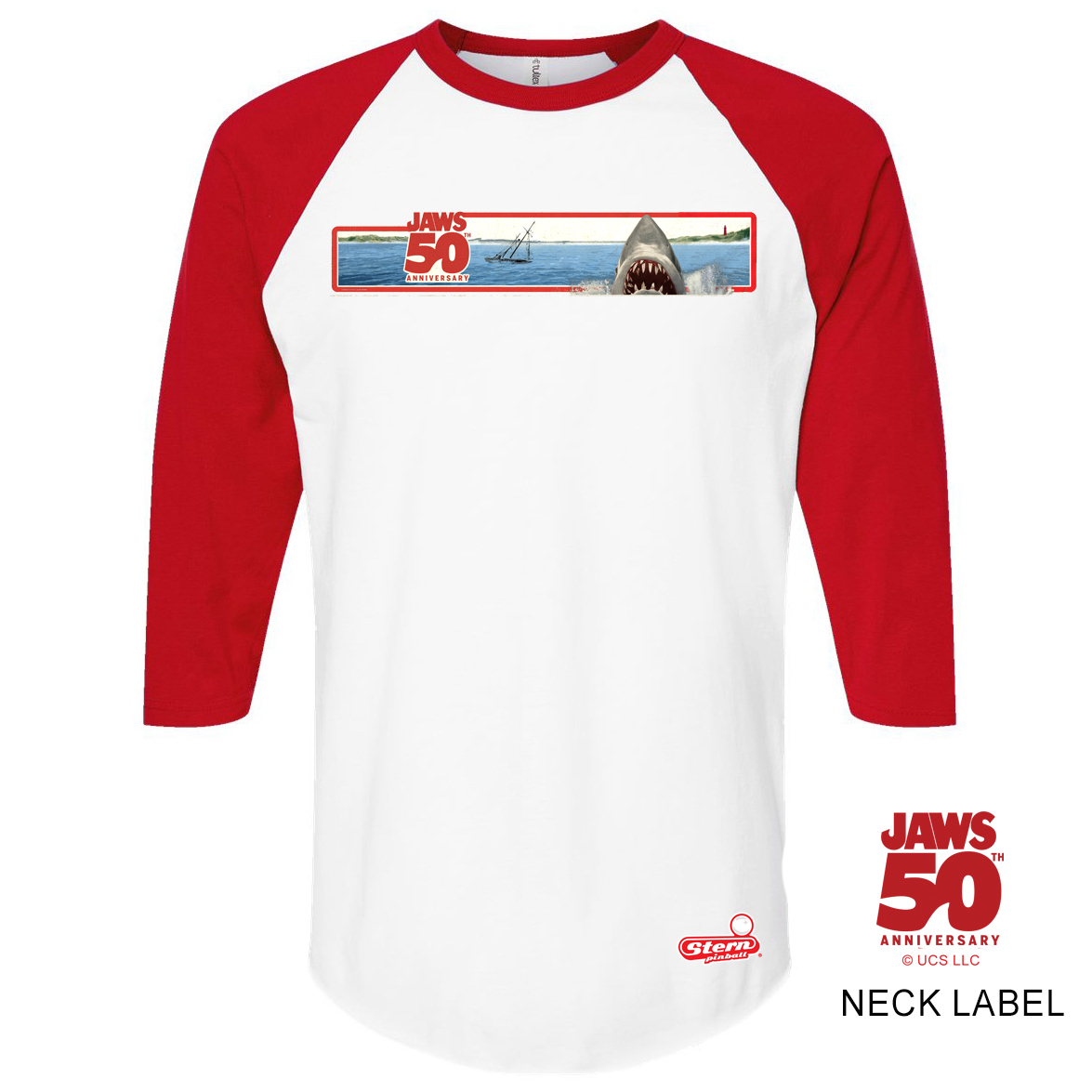Stern Pinball JAWS 50th Anniversary Raglan $40