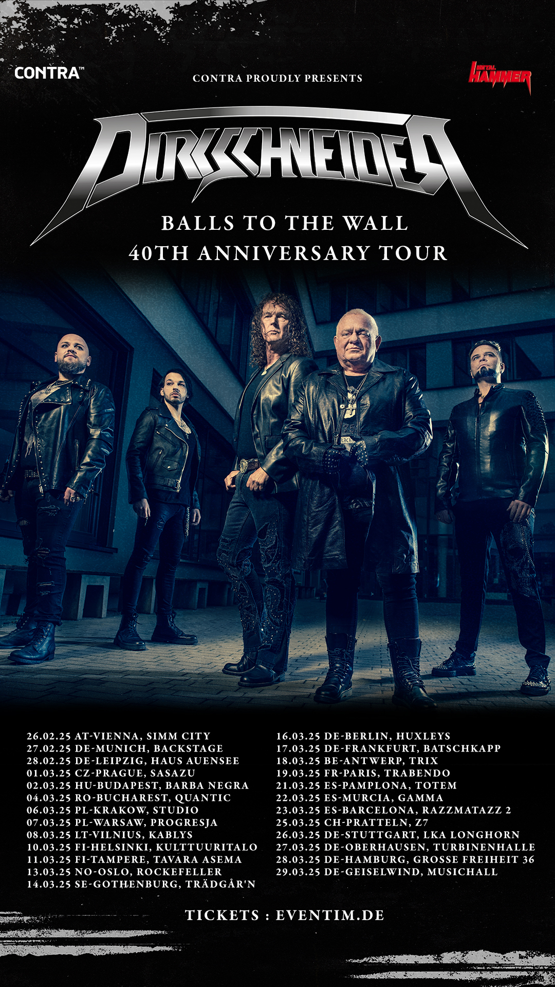 "Balls To The Wall" would be a fitting description for the stage presence of the band, which is completed by the drumming 'clockwork' of Sven Dirkschneider and a talented guitar duo built of Andrey Smirnov and Fabian "Dee" Dammers, too. What luck that the 40th anniversary of the mentioned studio album, which was originally released in late 1983 and which is the most sold and best known by ACCEPT, recently fell into the current U.D.O. / DIRKSCHNEIDER heyday. Of course the band don't want to leave this jubilee unnoticed: that's why DIRKSCHNEIDER are pleased to not only announce a full "Balls To The Wall" live performance but AN ENTIRE TOUR in belated celebration of the iconic album for spring 2025!