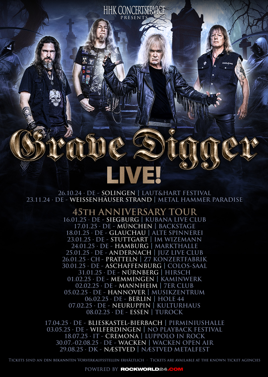 In the year 2025 the German metal institution celebrates its 45th anniversary. Founded in 1980 in Gladbeck/Germany, they set out to conquer the world. Who would have thought that 45 years later Grave Digger would be one of the most important, consistent and influential metal bands from Germany. With the release of the album "Heavy Metal Breakdown" in 1984, an unprecedented career began that will find its logical continuation with their new album “Bone Collector”, on January 17, 2025.