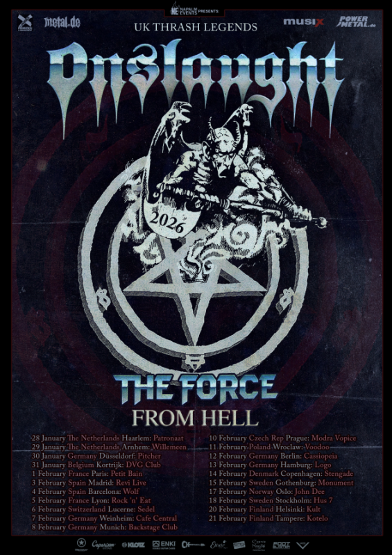 Continuing the explosive success of their still ongoing “Power From Hell” tour and their career-defining double-album “Origins Of Aggression” (released on May 23, 2025 via Reigning Phoenix Music), the band are ready to turn the pit into chaos once more with their “The Force From Hell” tour. In early 2026, they’ll be bringing the ultimate thrash assault to 22 cities all over the continent - a full-on fusion of their iconic debut “Power From Hell” and the 40th anniversary celebration of “The Force.”